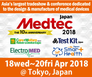 We exhibit MEDTEC Japan 2018 to be held from April 18 through 20, 2018 at Tokyo Big Sight (East 4-6 Hall). Please visit our booth #1015 in Consulting Area.