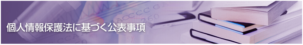 「個人情報の保護に関する法律」(以下「法」という。)に基づき、以下の事項を「公表」いたします。(「本人が容易に知り得る状態に置いている」こと、及び、「本人の知り得る状態(本人の求めに応じて遅滞なく回答する場合を含む。)」に置くことを義務付けられている事項を含みます。)